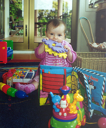 on her feet now and likes to stand while playing