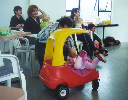 together with a little boy of the same age, and