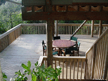into the small retaining-walled area of the deck