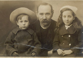 Lisa) were also born there. David entered the Calvanistic Methodist Ministry and became a minister at Bwlch in 1902 where he met Mary Elizabeth Price. They were married in 1903 and lived at the Manse at Bwlch, where their two children, Eirlys and Alun were born. Eirlys was born on the 2nd February 1904 and Alun on the 22nd April 1907. Below: Alun, David and Eirlys Tyler-Davies |