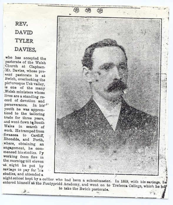 During David's years of higher education, there were five other "David Davies" in his class, as the names were both very common in Wales. David took his middle name, Tyler, and added it to his surname to distinguish himself from the others, so in future he was always referred to as "David Tyler Davies".